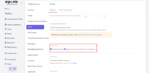 - Mark the Enable the option to select a price list at the line item level option if you want to apply different price lists for each line item.